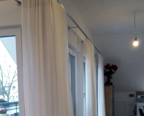Gardinen, Gardinenstangen, VorhängeTransparente Wohnzimmervorhänge: Ganz modern sind transparente Wohnzimmervorhänge die auf leichten edlen Vorhangschienen im Raum schweben.